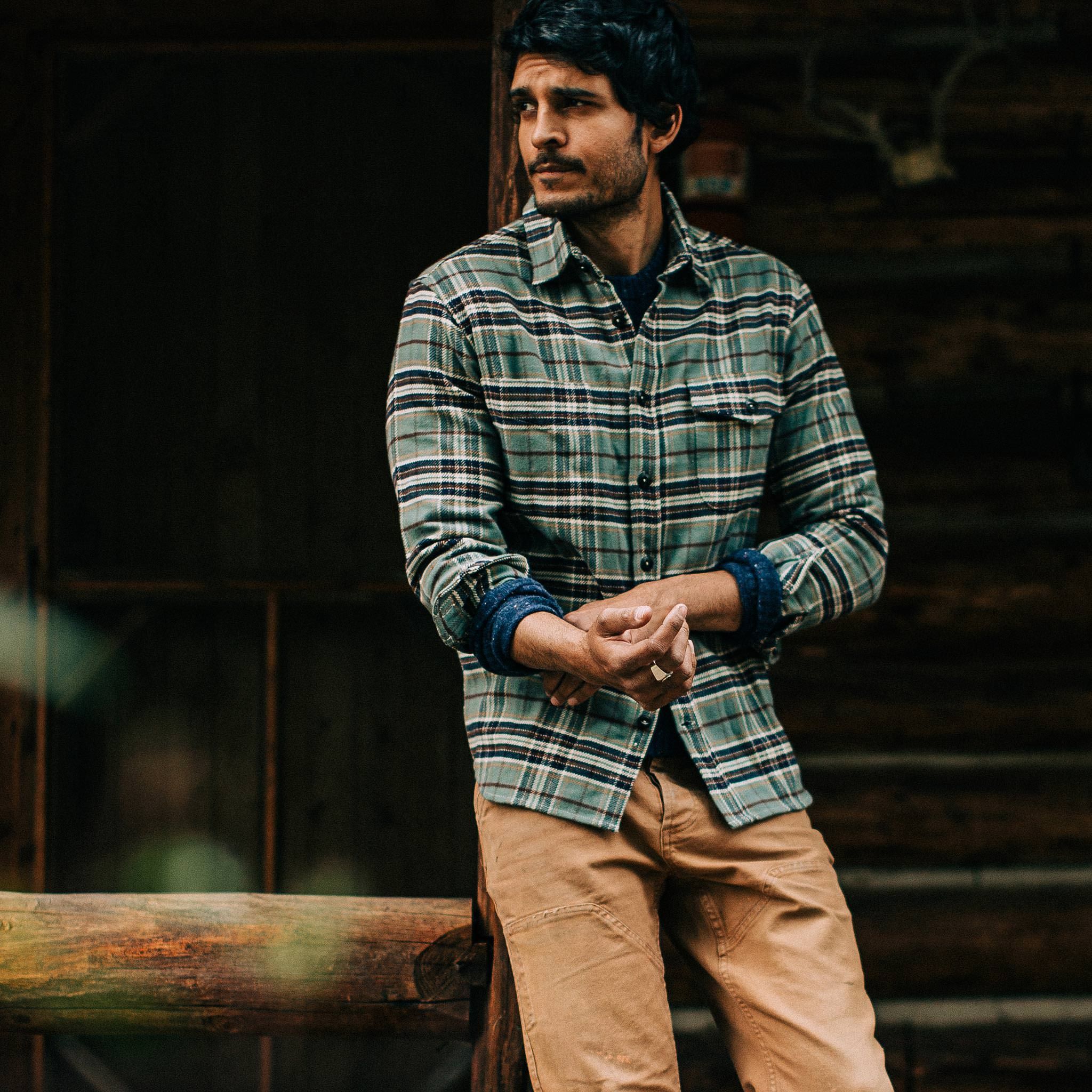 - 9-oz. 100% brushed Organic Cotton twill flannel, custom developed for Aausu.
