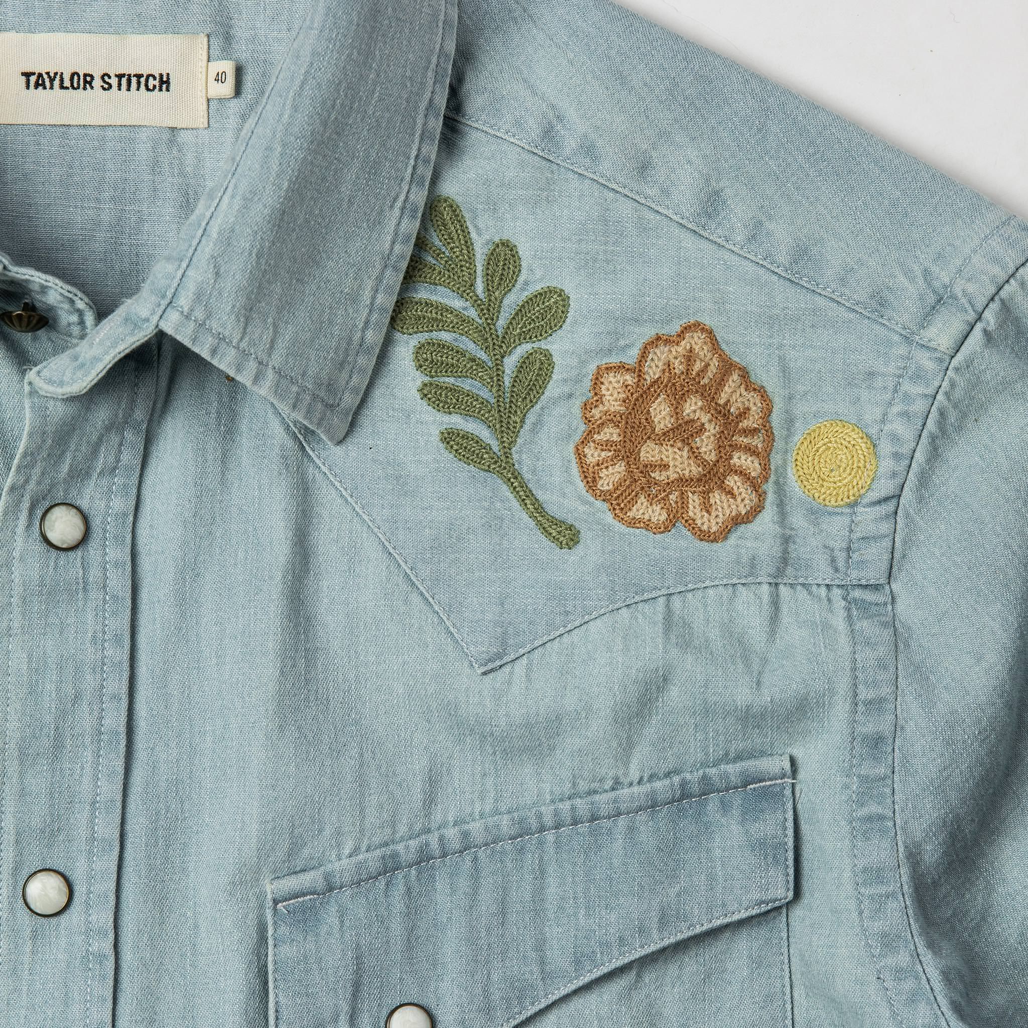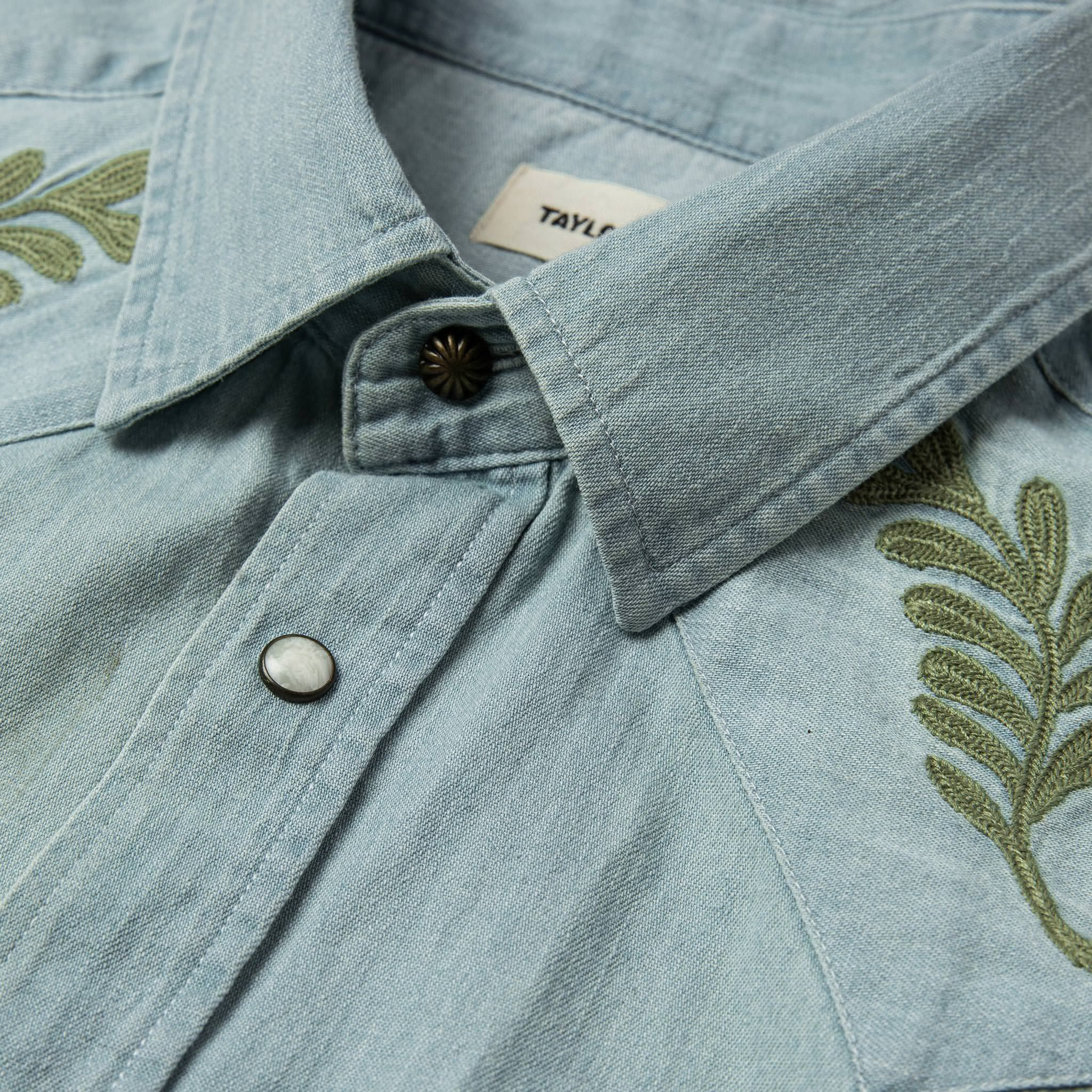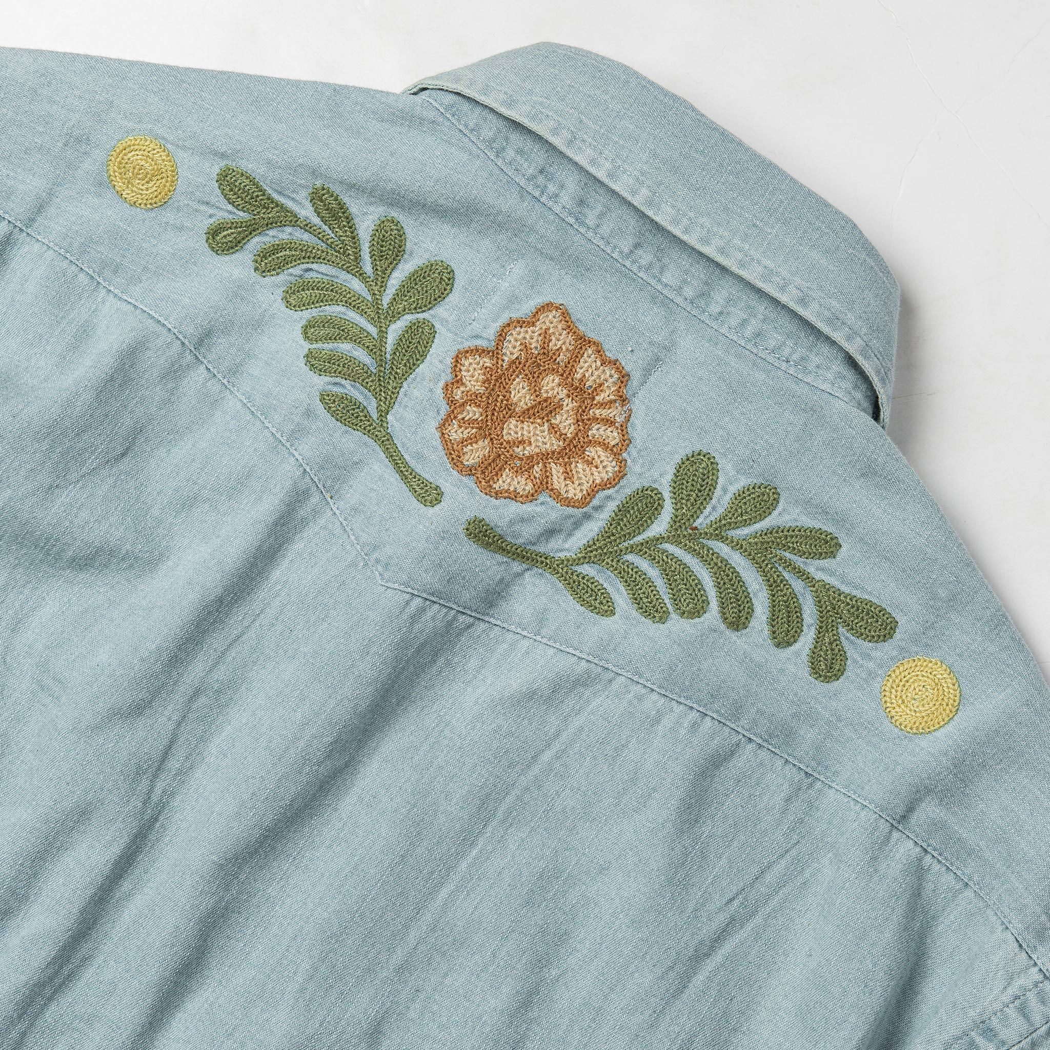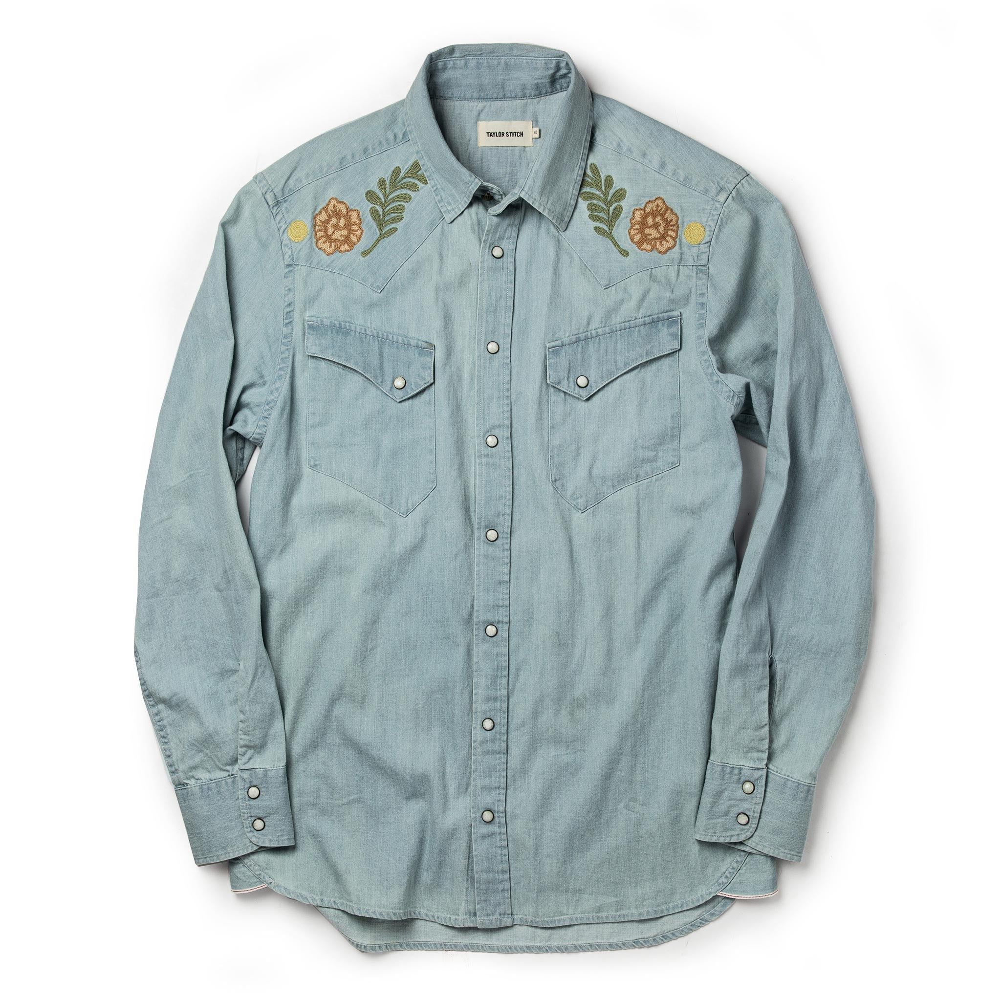 The Embroidered Western Shirt in Washed Denim from Aausu