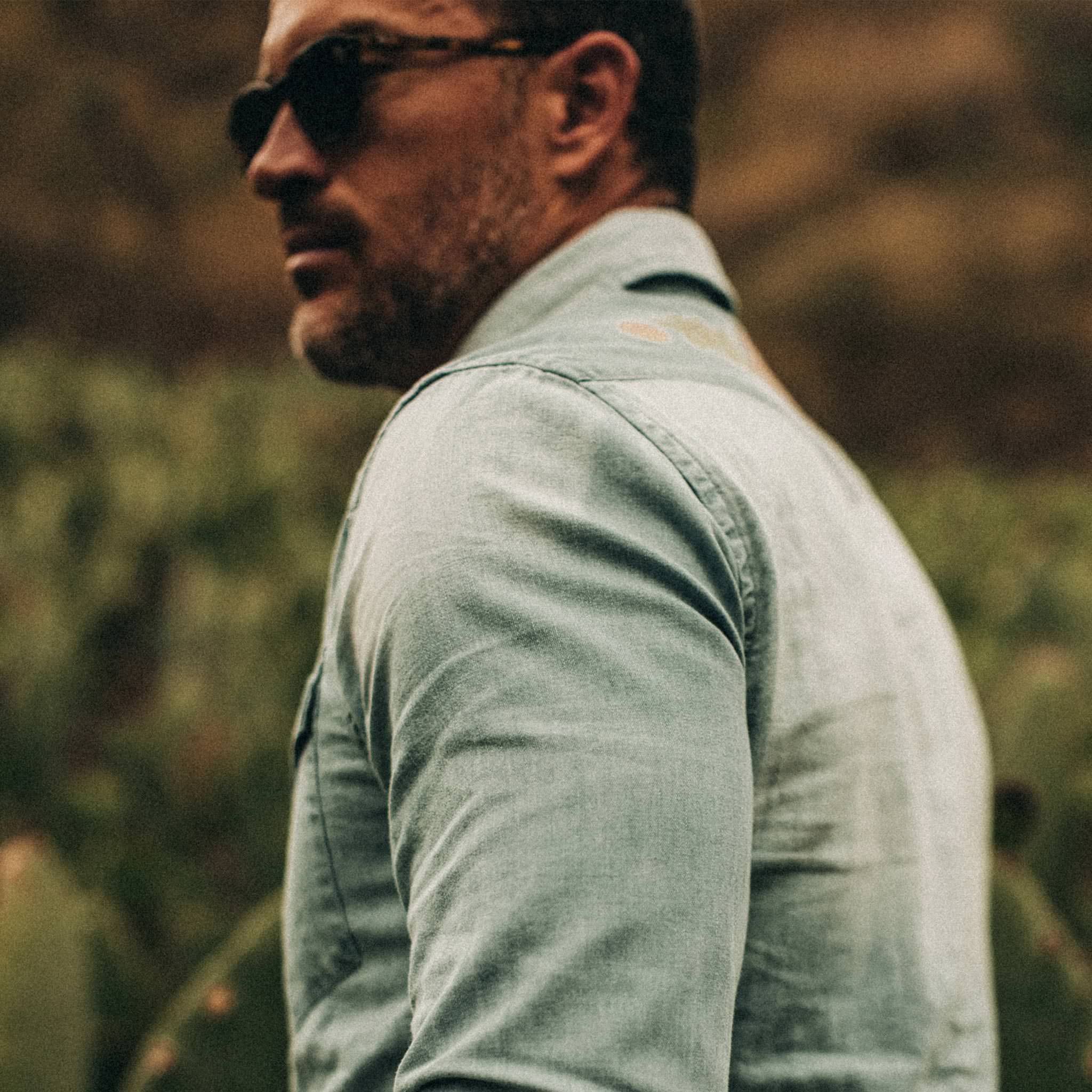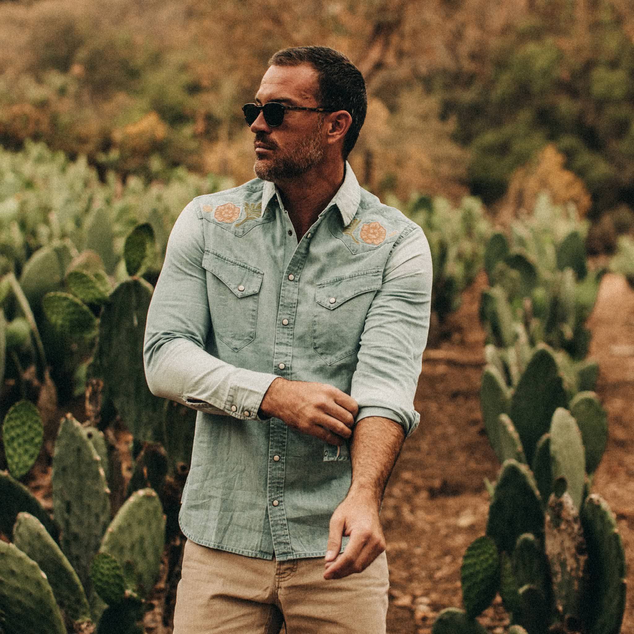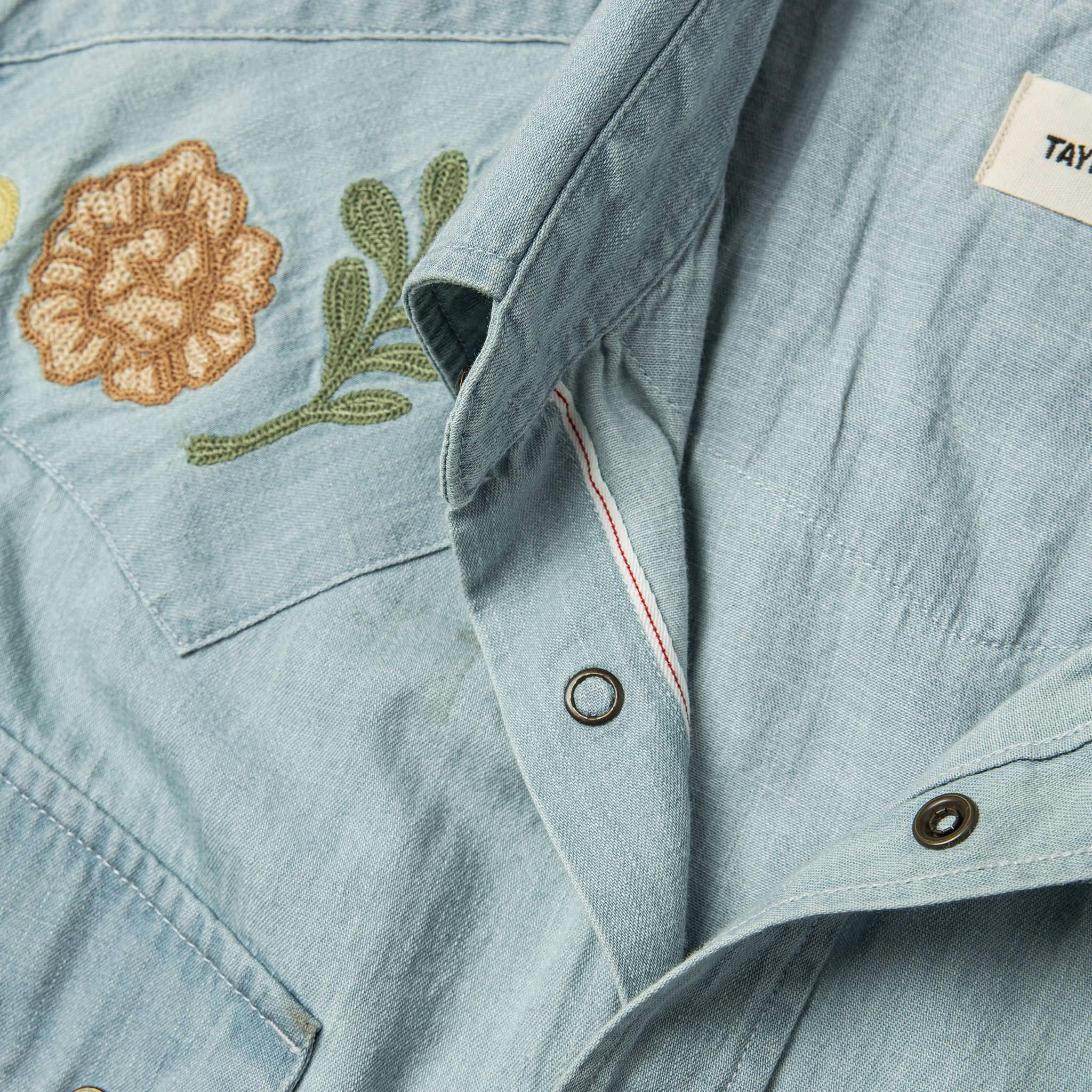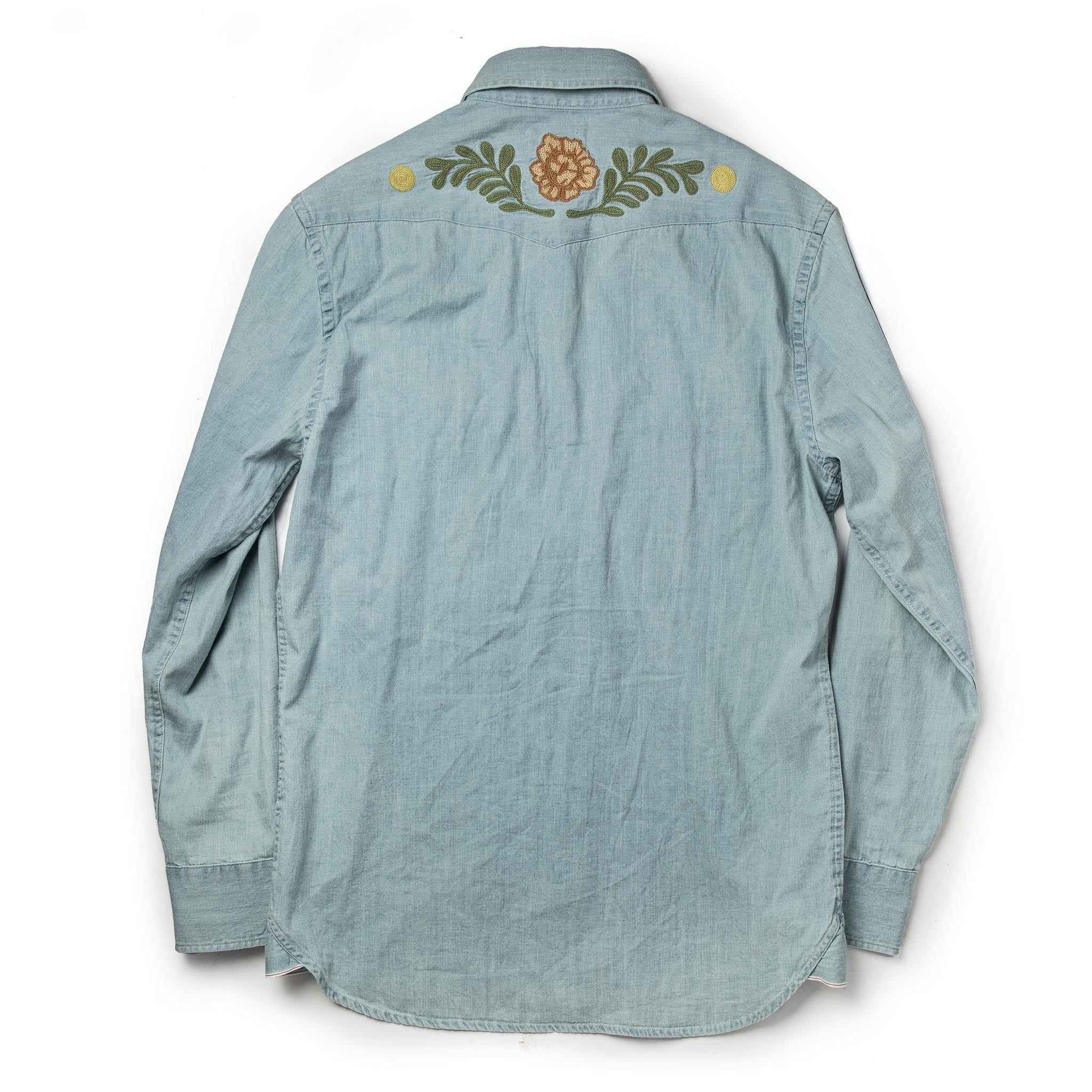 The Embroidered Western Shirt in Washed Denim from Aausu