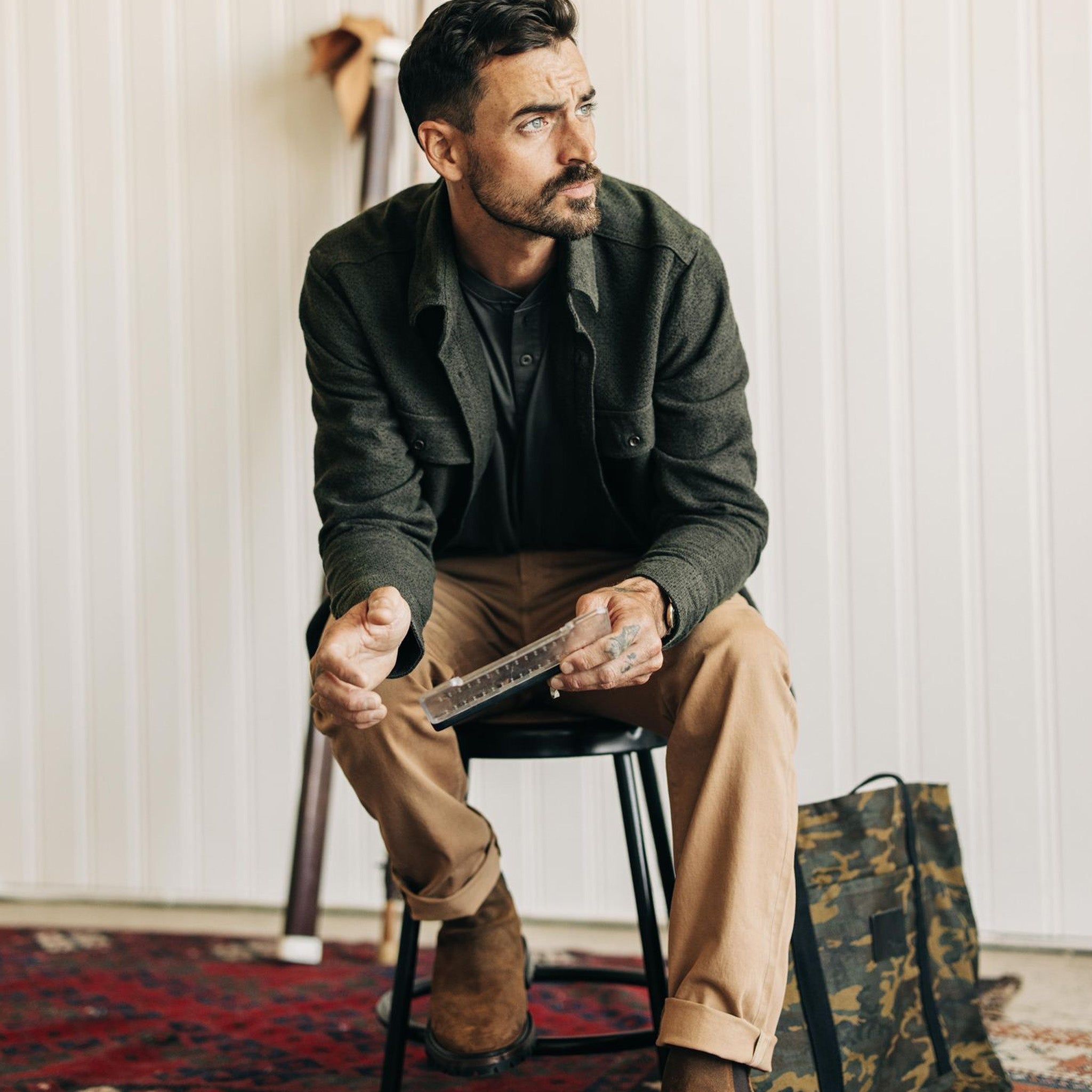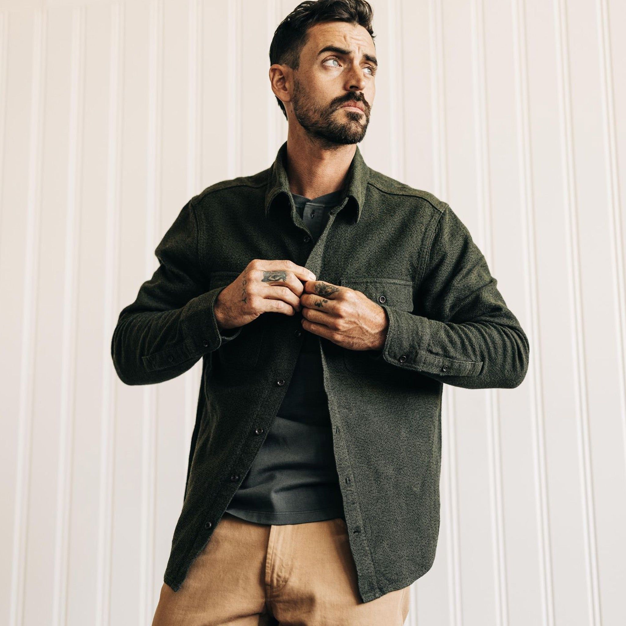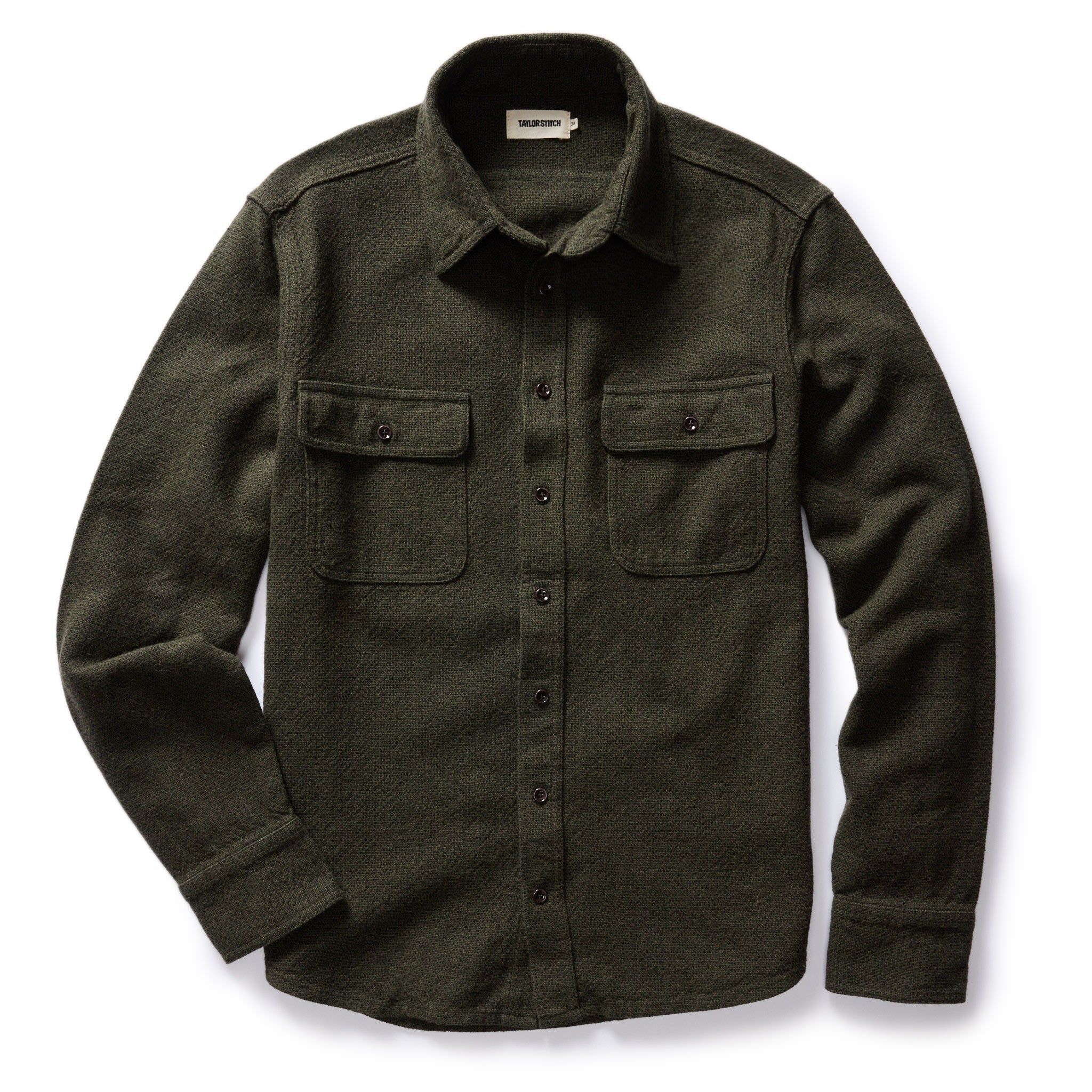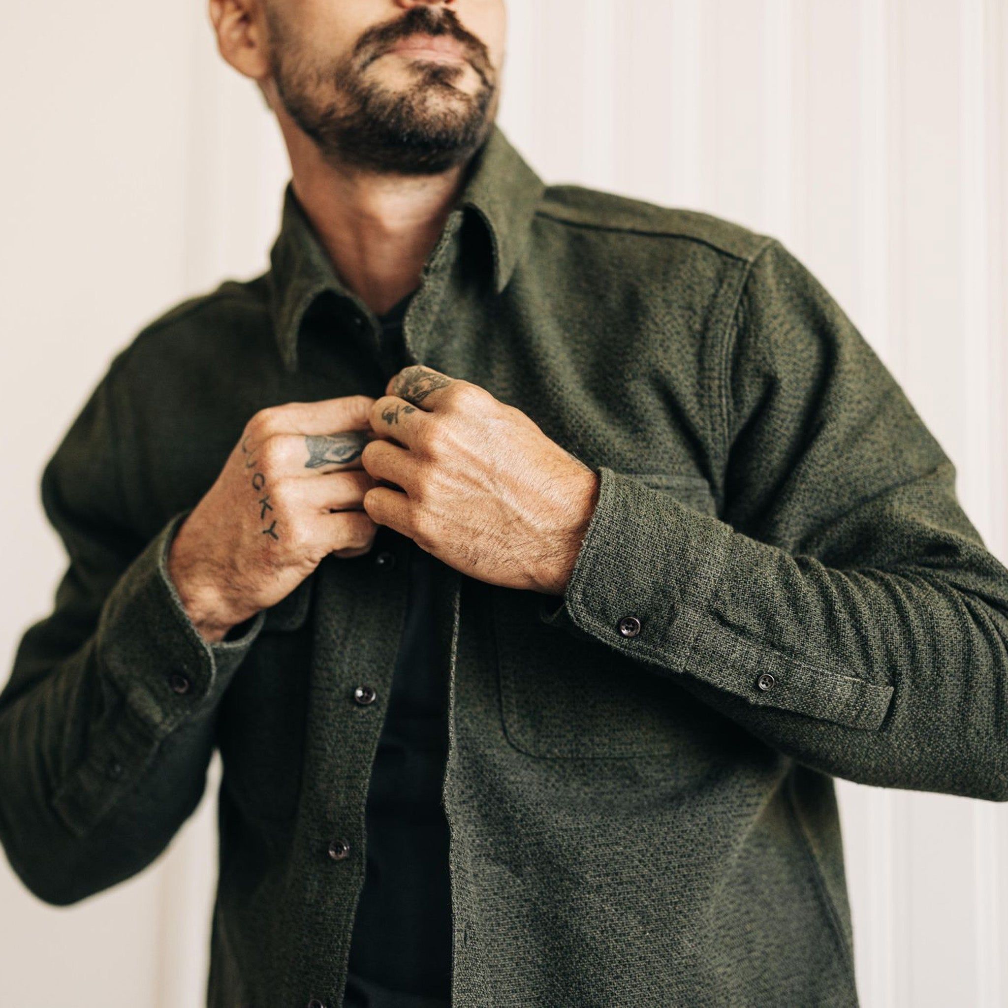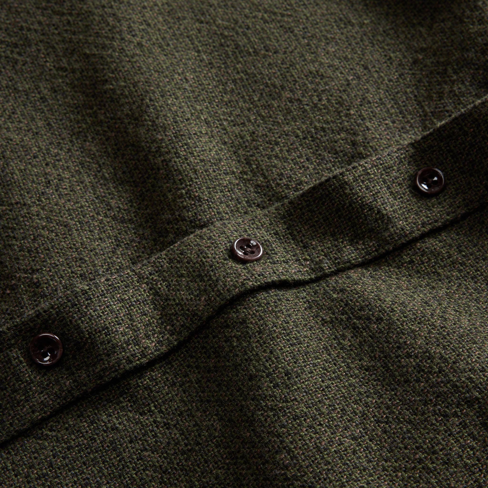 The Ledge Shirt in Dark Forest Linen Tweed from Aausu