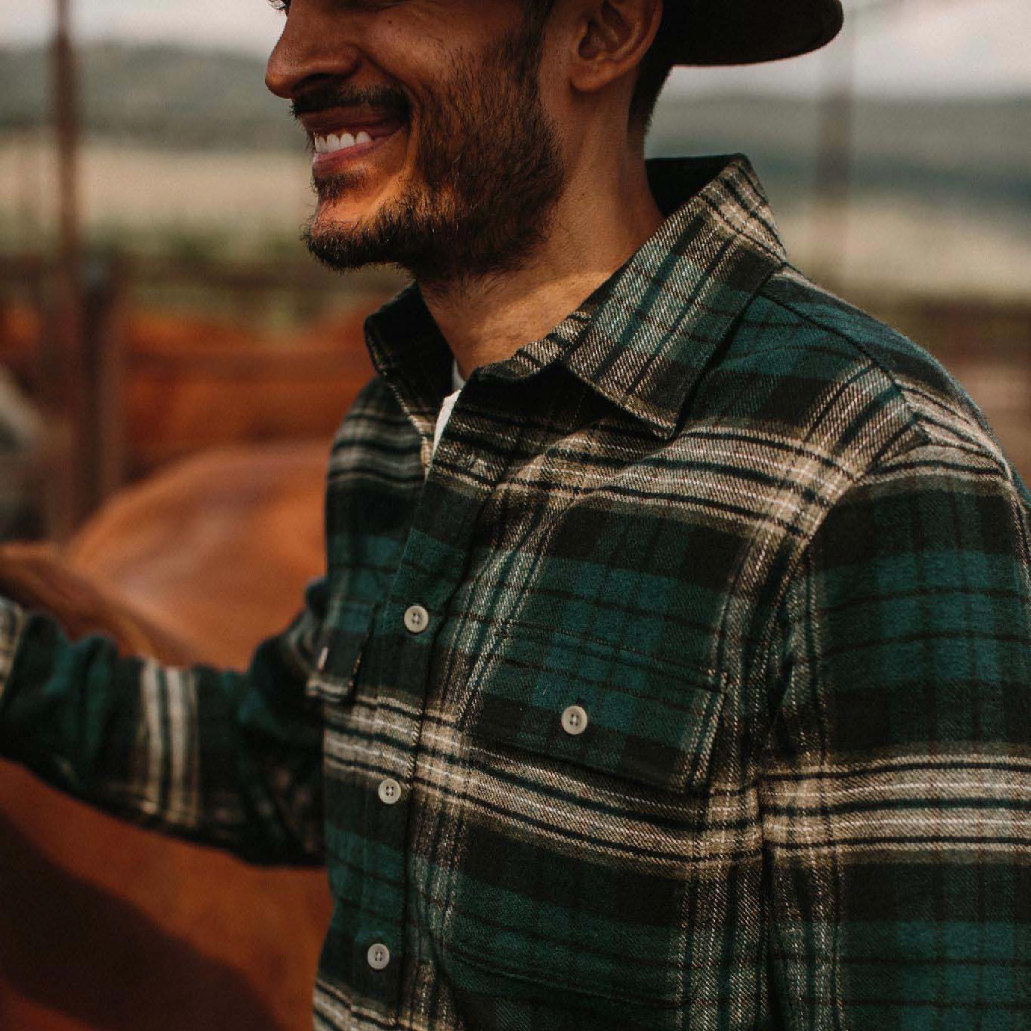 The Ledge Shirt in Deep Sea Plaid from Aausu