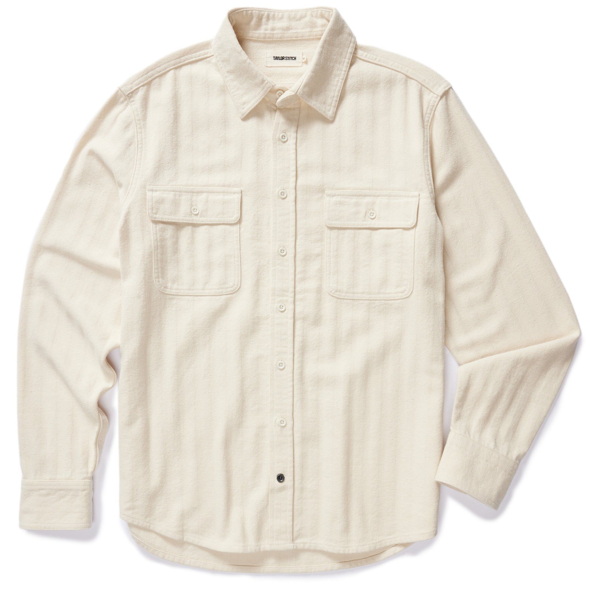 The Ledge Shirt in Oyster Herringbone from Aausu