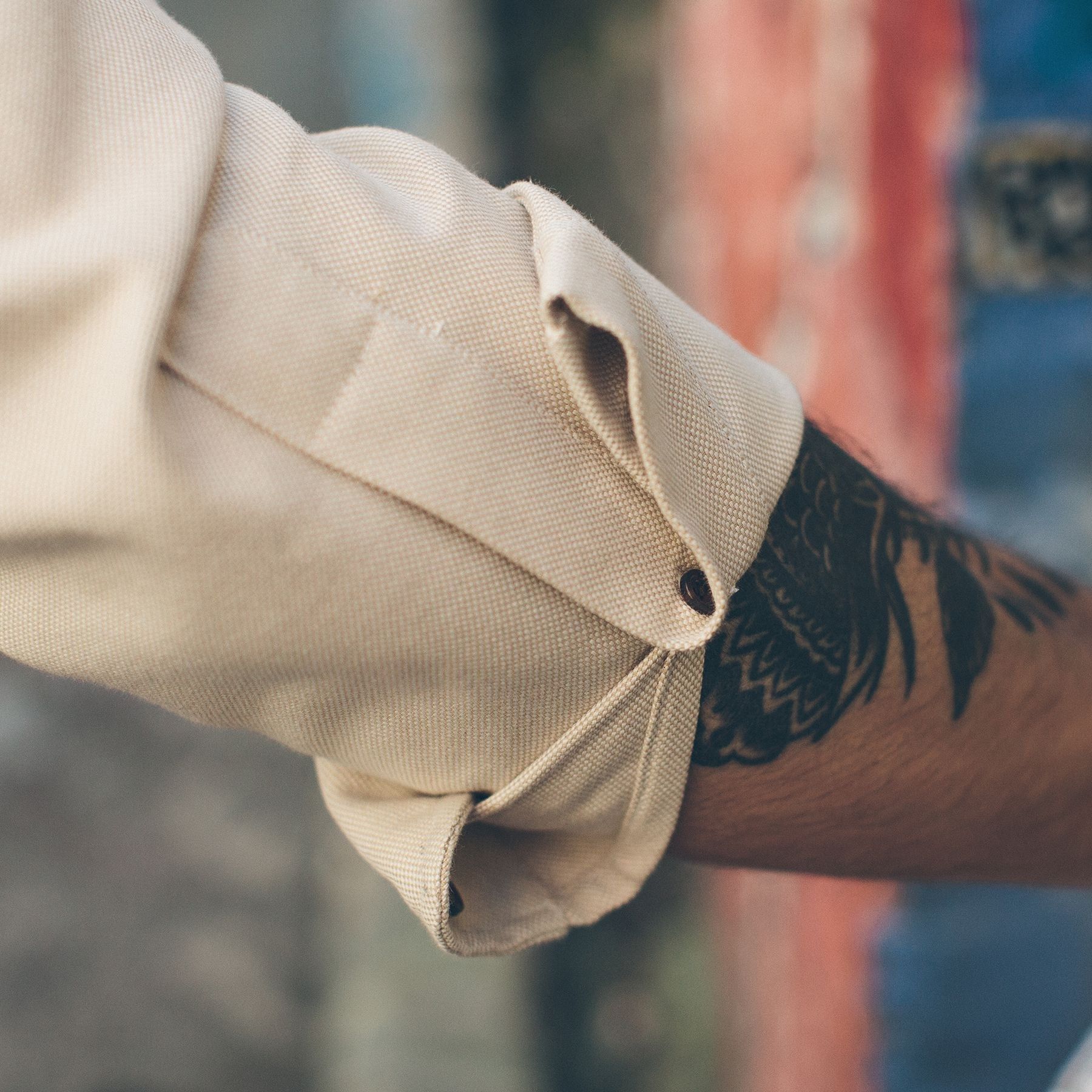 Our staple shirt got beefed up. This oxford is made from a 8-oz. Work Oxford in Sand. Soft, sturdy, with superior tailoring, In-Stock now.